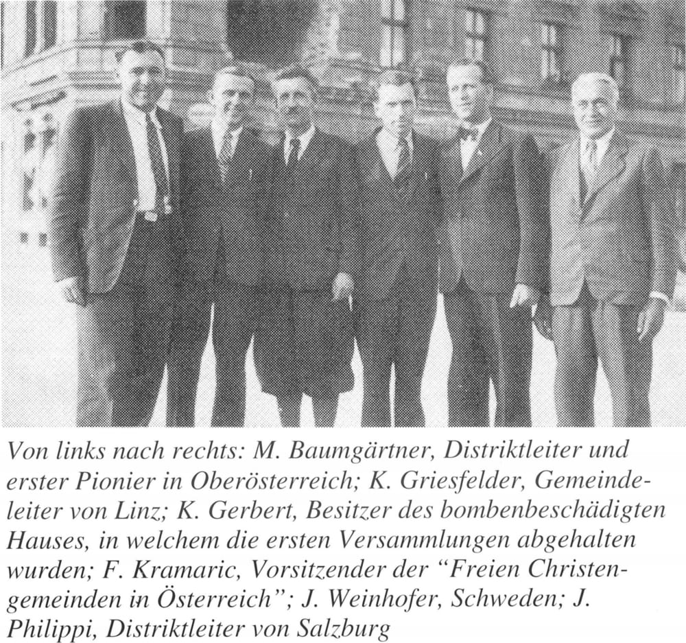 „Nach dem Zweiten Weltkrieg kamen viele, deutsche, gläubige Flüchtlinge aus dem ehemaligen Jugoslawien in das vom Krieg gezeichnete Österreich und in guter Zusammenarbeit mit den übrig gebliebenen österreichischen Gläubigen wurde die Gemeindearbeit im Raum Wien, im Burgenland, im Salzburger Land u.a. wieder aufgenommen. Am 14. Dezember 1946 trafen sich dann 26 Prediger in einer Flüchtlingswohnung in Sattledt (Oberösterreich) – unter ihnen Leute, die durch den Krieg fast alles verloren haben – und gründeten, mit einer Begeisterung für die Arbeit am Reich Gottes im Herzen, die „Freien Christengemeinden Österreichs“. Ein Ältestenrat wurde berufen und das Missionsfeld Österreich wurde in fünf Arbeitsdistrikte eingeteilt. Die Pfingstbewegung hatte nun endgültig begonnen, in Österreich Fuß zu fassen.“